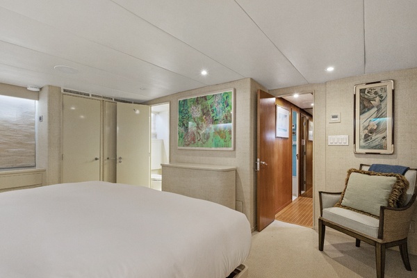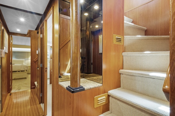 Major improvements include new CAT C‑18 engines installed in 2022 with approximately 500 hours and warranty coverage, along with new CAT generators. She also features new A/C chillers and an ElectroSea system in 2025, a full paint job completed in 2022, and a full varnish taken down to bare wood in 2024.