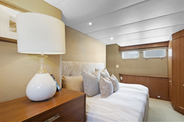 Interior updates include soft goods refit in 2012 / 2013 and a modernized galley completed in 2022. Additional upgrades include updated Garmin electronics, a new water maker, and numerous mechanical improvements throughout.