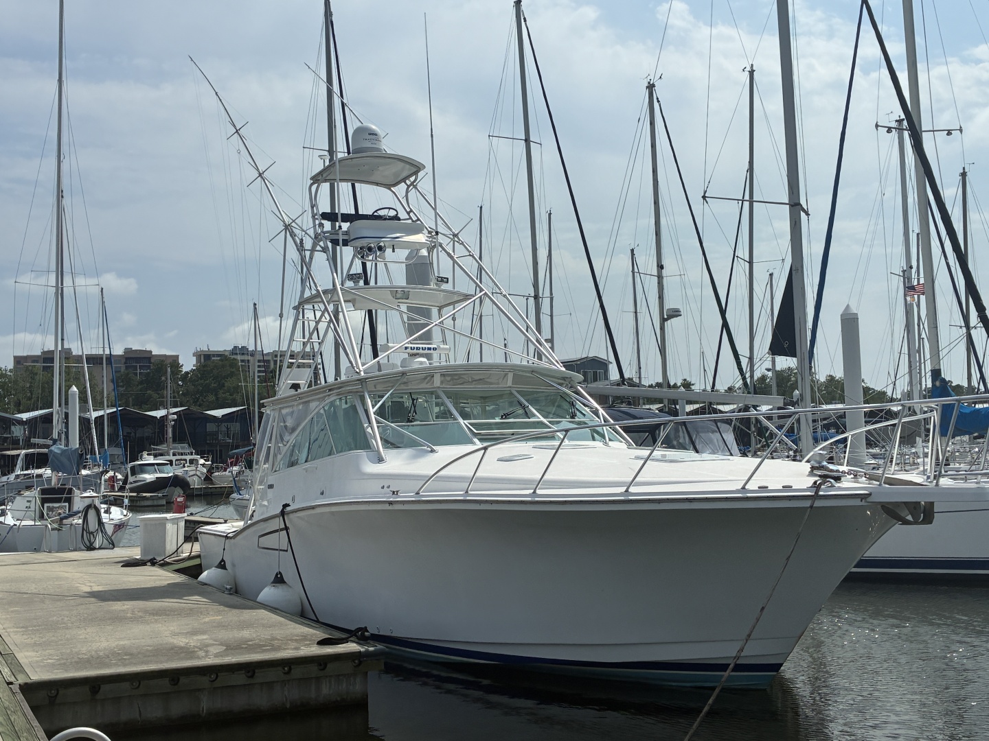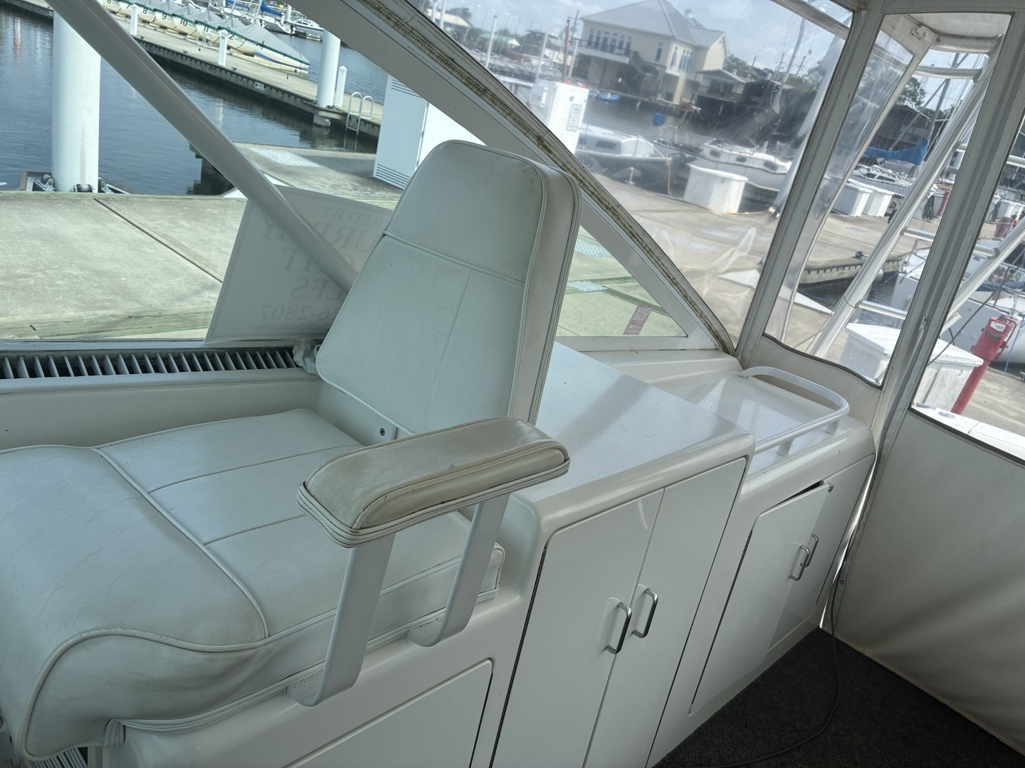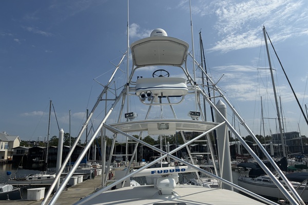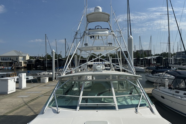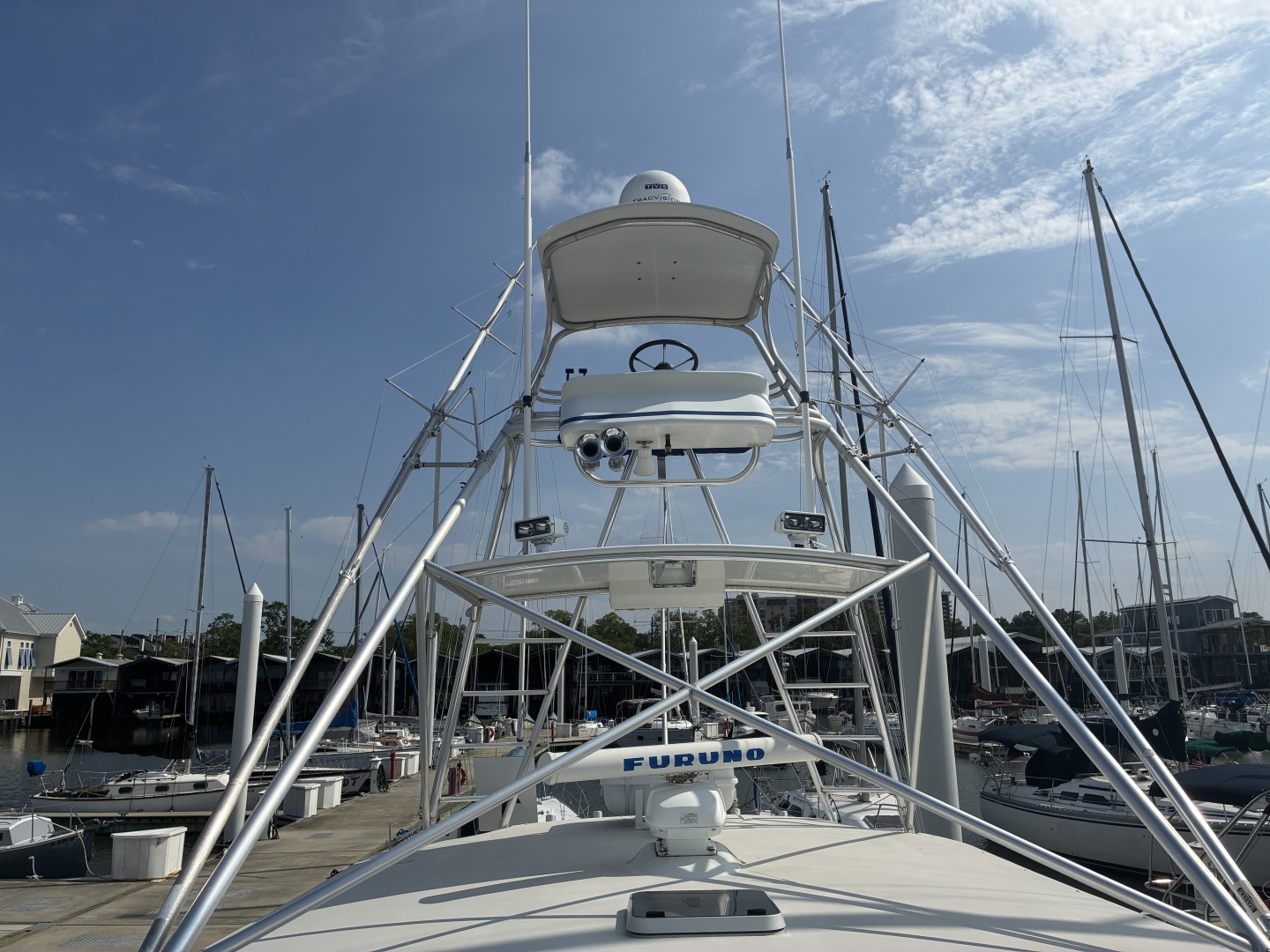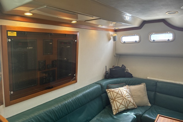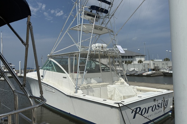 The Cabo 45 Express was one of the largest express fishermen of its day. She’s constructed on a beamy modified-V hull with cored hullsides, a deep forefoot, and a well-flared bow. Aside from her rakish profile, perhaps the most distinctive feature of the Cabo 45 is her huge bridge deck with its centerline helm, integral electronics console, and expansive lounge seating. The fully equipped cockpit comes with a transom livewell, a beautifully designed tackle center, and two huge in-deck fish boxes. The engine room, beneath the bridge deck, is massive. The standard single-stateroom interior of the Cabo 45 is meticulously finished, and the spacious salon provides seating for a small crowd. Additional features include storage for over 20 rods, an electrically controlled windshield vent, and a transom door. Cats 800hp will cruise at 28–29 knots. Over 100 were built. Porosity is the preferred two-stateroom layout and is located in the New Orleans Municipal Yacht Harbor East and only a short drive from the Louis Armstrong Airport (MSY). See the Google Map below to help plan your visit.