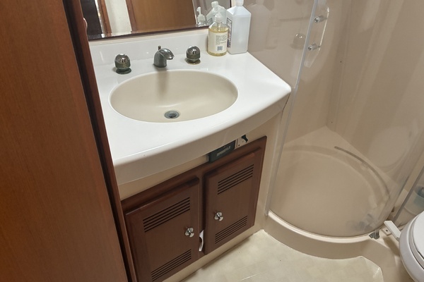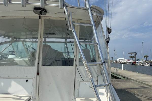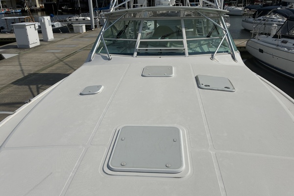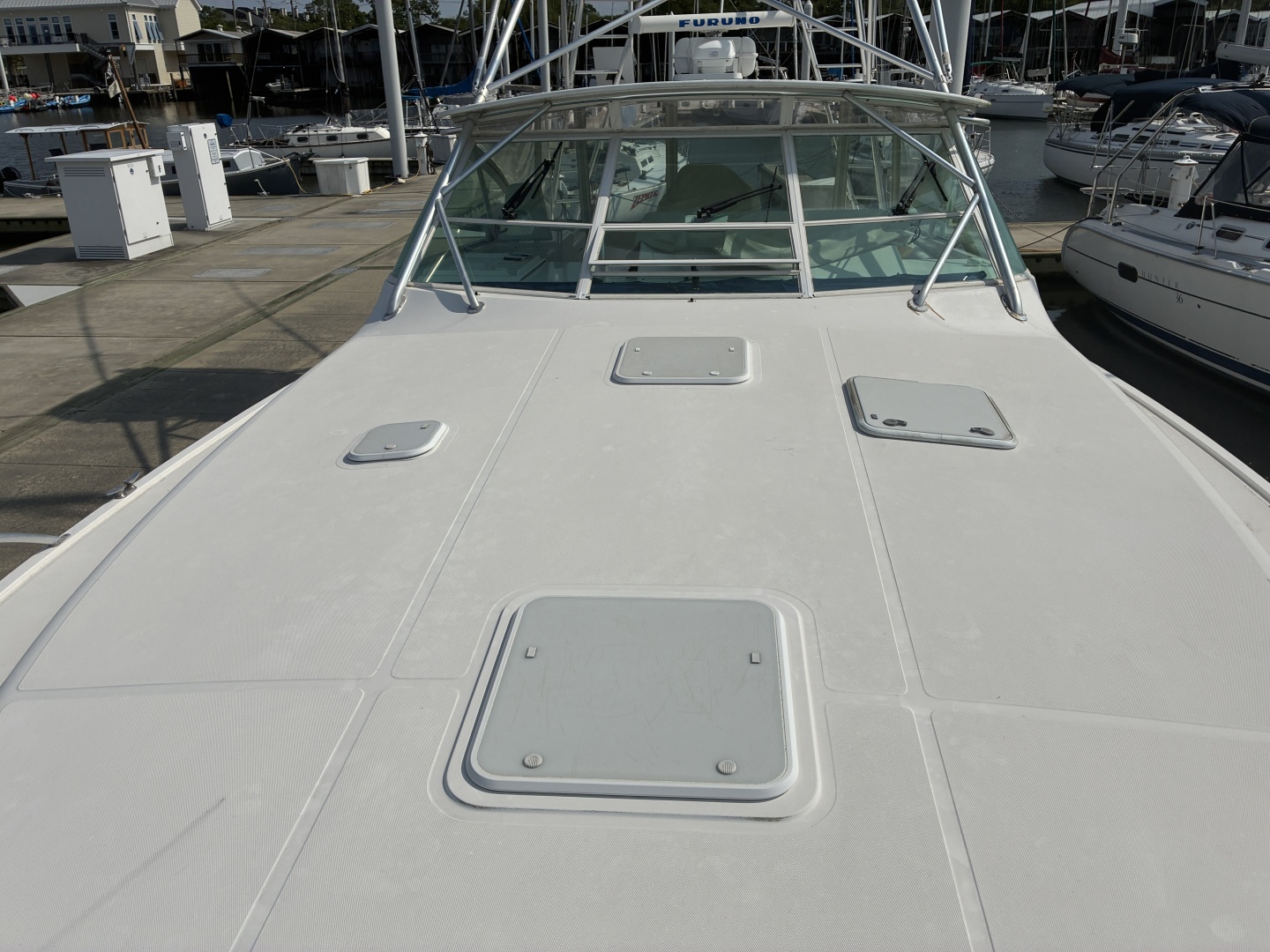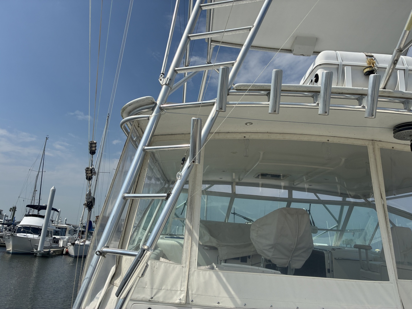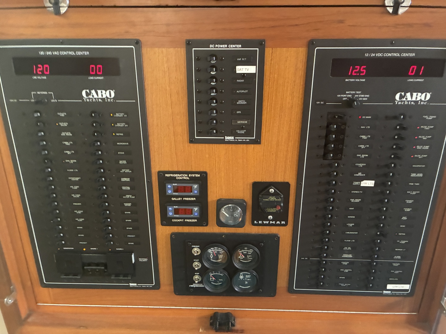The Cabo 45 Express was one of the largest express fishermen of its day. She’s constructed on a beamy modified-V hull with cored hullsides, a deep forefoot, and a well-flared bow. Aside from her rakish profile, perhaps the most distinctive feature of the Cabo 45 is her huge bridge deck with its centerline helm, integral electronics console, and expansive lounge seating. The fully equipped cockpit comes with a transom livewell, a beautifully designed tackle center, and two huge in-deck fish boxes. The engine room, beneath the bridge deck, is massive. The standard single-stateroom interior of the Cabo 45 is meticulously finished, and the spacious salon provides seating for a small crowd. Additional features include storage for over 20 rods, an electrically controlled windshield vent, and a transom door. Cats 800hp will cruise at 28–29 knots. Over 100 were built. Porosity is the preferred two-stateroom layout and is located in the New Orleans Municipal Yacht Harbor East and only a short drive from the Louis Armstrong Airport (MSY). See the Google Map below to help plan your visit.