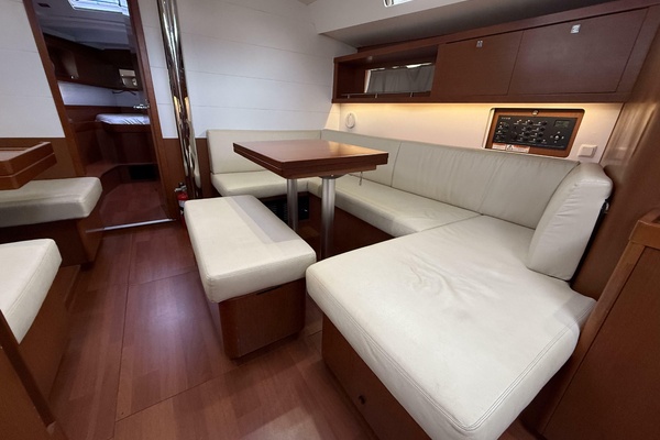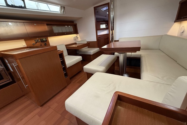 The 2015 Beneteau Oceanis 45 is the quintessential modern cruiser. A beautifully balanced sailing yacht that blends refined European design with comfortable, capable long-distance cruising. Clean, flowing lines above a beamy hull speak to her thoughtful naval architecture by Finot-Conq, delivering a stable, seaworthy platform that’s as rewarding to sail offshore as she is to enjoy at anchor.