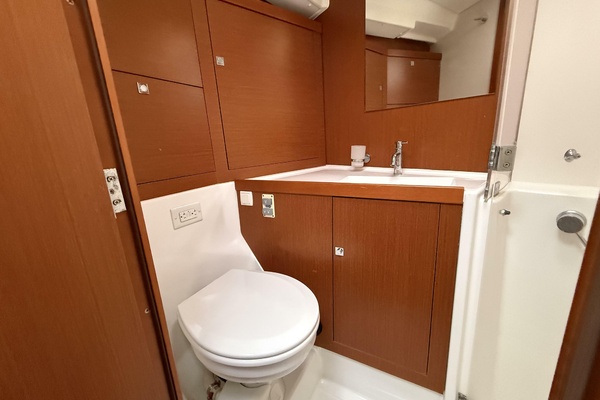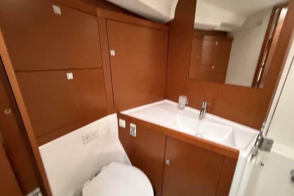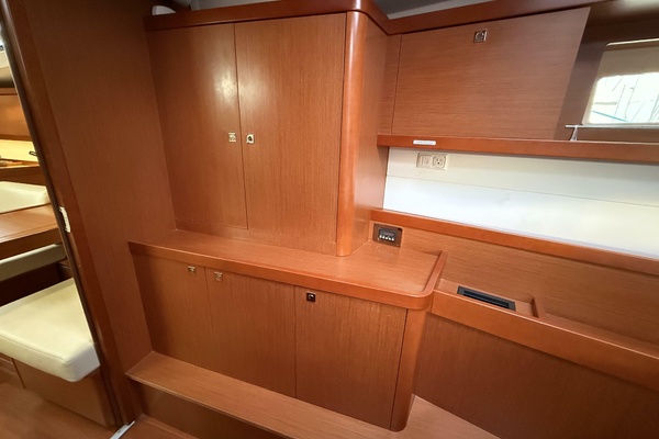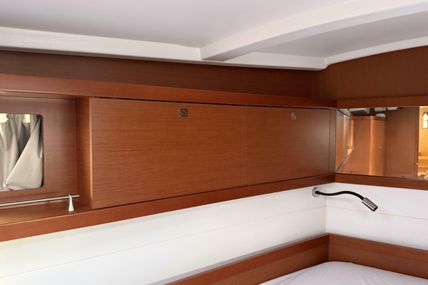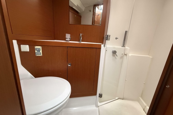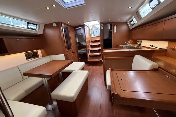 Below deck, smart interior design by Nauta turns every square foot into functional luxury. Below you’ll find three generous cabins, beautifully finished woodwork, abundant natural light through nine flush deck hatches and ample hull portlights, and thoughtful stowage throughout. Whether cruising with family or guests, the Oceanis 45 proves as comfortable at sea as she is at the dock.