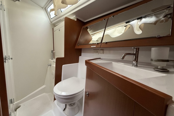 Under sail, the Oceanis 45’s hull and rig are designed for both performance and ease. She’s quick to respond, balanced, and manageable whether you’re chasing offshore miles or exploring favorite coastal harbors. With a reliable Yanmar diesel and thoughtful sail handling systems, she’s equally at home crossing blue water or slipping into quiet anchorages.