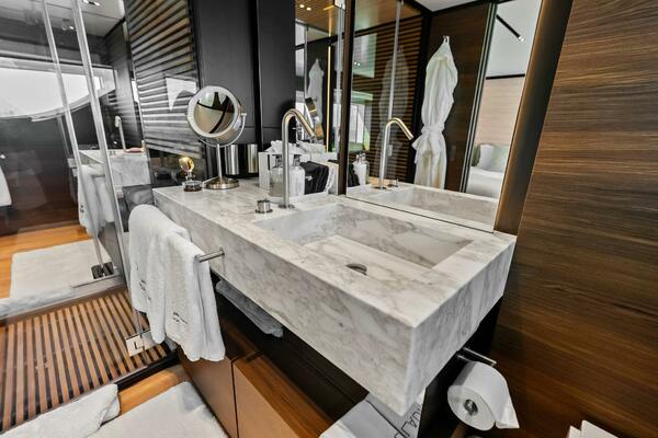 The yacht is just completing a comprehensive preventive maintenance program at service yard, representing an investment of approximately $150,000, including full service of main engines and generators, Seakeeper inspection, system calibrations, and extensive cosmetic refinements, ensuring she presents in true turnkey condition for her next owner. (Full list of works available upon request).