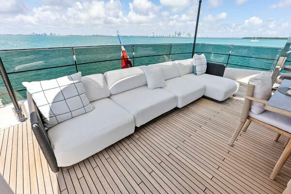 This follows additional upgrades completed just prior to the boat show, with approximately $70,000 invested in new exterior cushions and covers, full exterior polish, and professional teak treatment, further enhancing the yacht’s overall presentation.