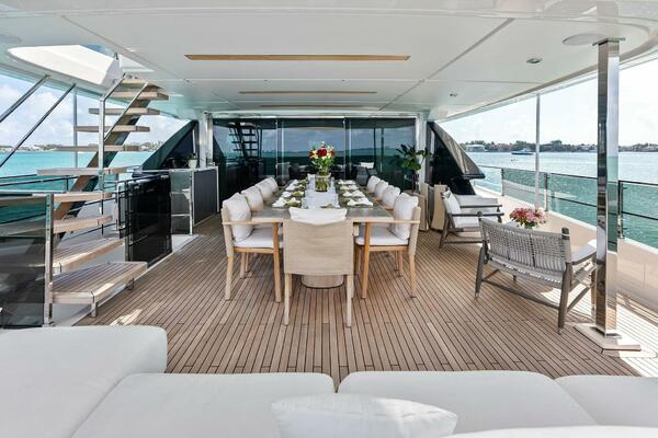 The Custom Line Navetta 33 has proven to be one of the most successful models ever builtby Ferretti Group, widely appreciated for her exceptional volume, timeless Italian design, reliability, and strong long-term value.